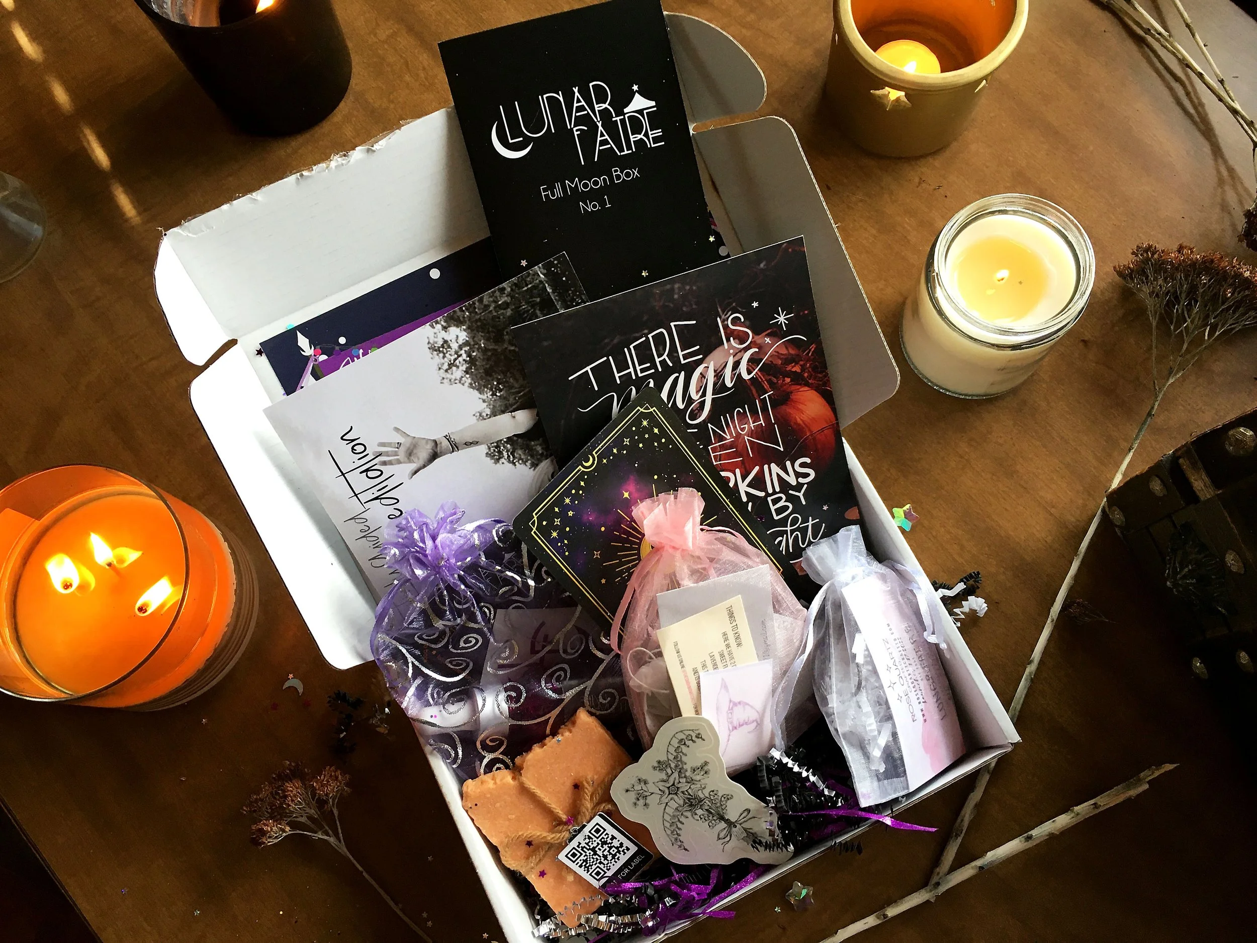 Subscription boxes are nothing new, but finding a similar service completely run and stocked by small businesses is difficult. I had spent many crazy, magickal nights as a vendor for the NJ Lunar Faire in person during 2021, but never had my work in a subscription box before, let alone heard about another event doing one with their vendors. The first Full Moon box from 1/17/22 sold out of all tiers, and I’m excited to share my experience contributing to it with all of you.