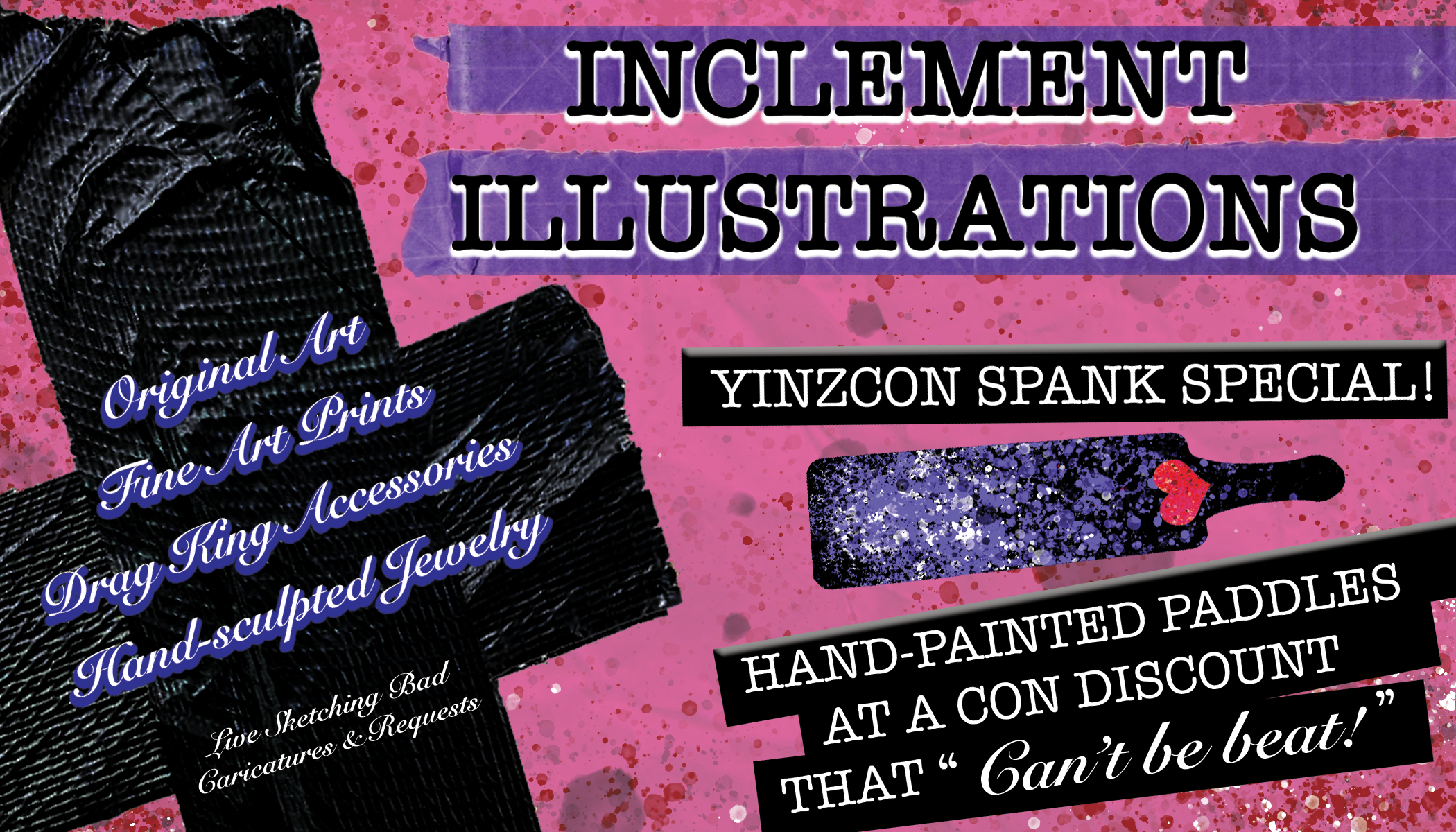 Specials on originals, prints, live sketch cards, and debuting new products including: Hand sculpted drag king nipples, hand sculpted pins, and hand-painted spanking paddles!